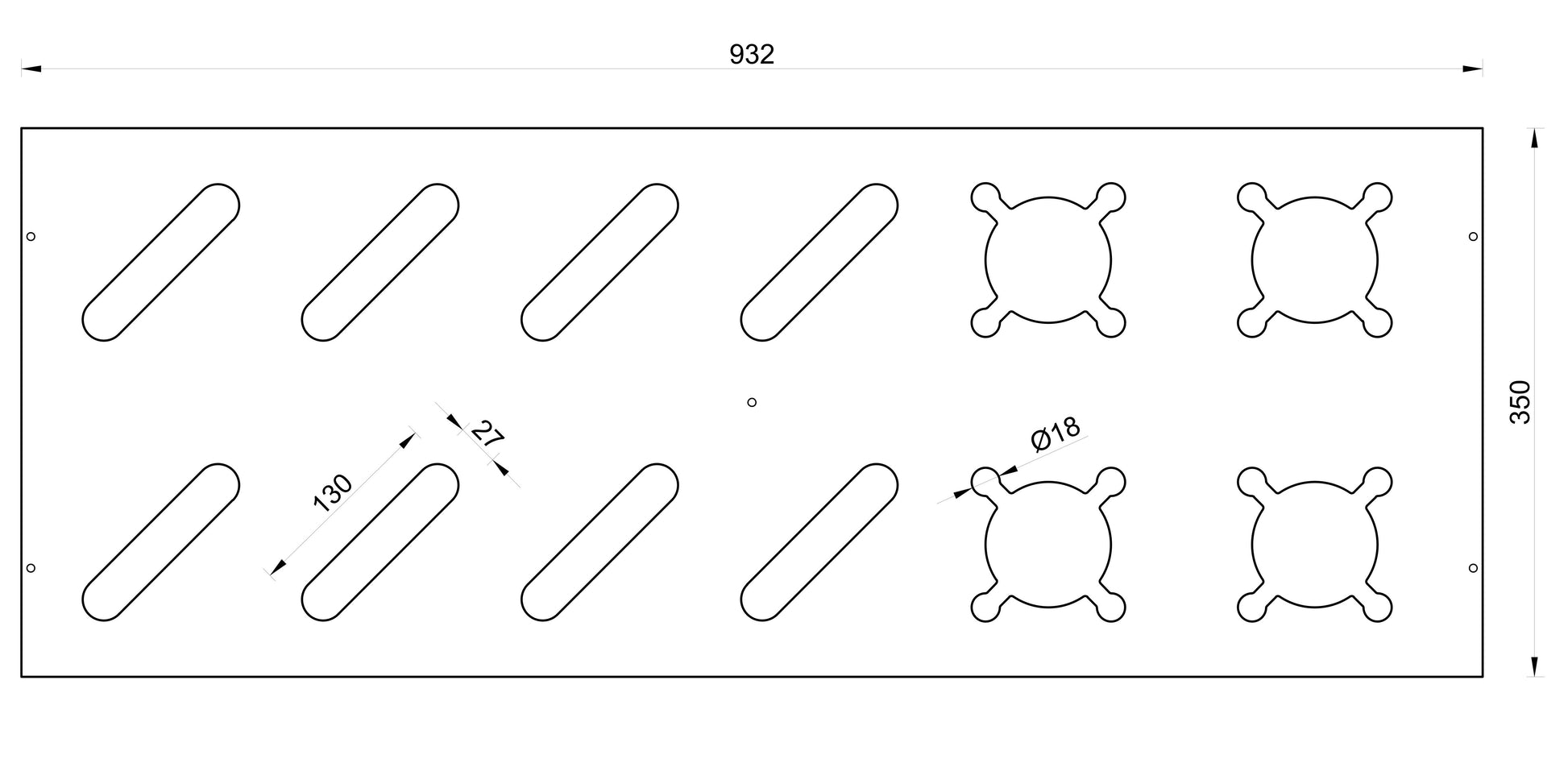 - Ruim: De standaard is ontworpen voor 8 paar ski’s en 8 paar stokken. De openingen voor ski’s zijn 13 x 2,7 cm groot. Het is mogelijk om grotere openingen te maken. De gaten voor de stokken zijn zo ontworpen dat de stokken rechtop staan.